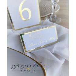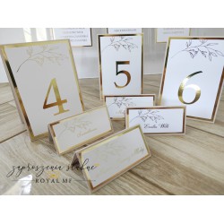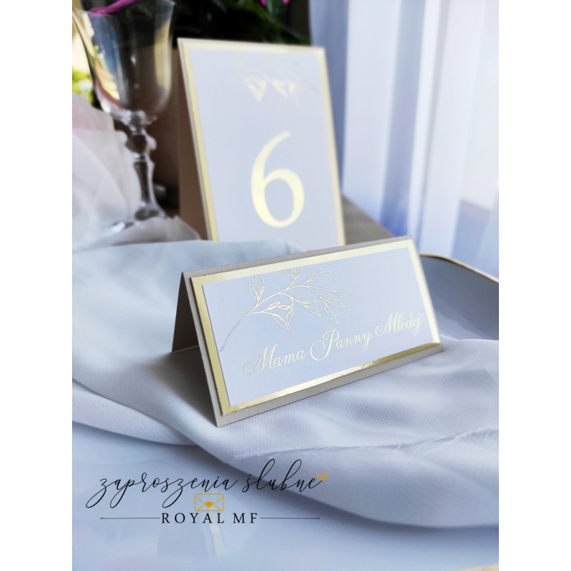 Eleganckie winietki wykonana z papieru w kolorze biszkoptowym oraz złotego z złoconą, błyszczącą treścią